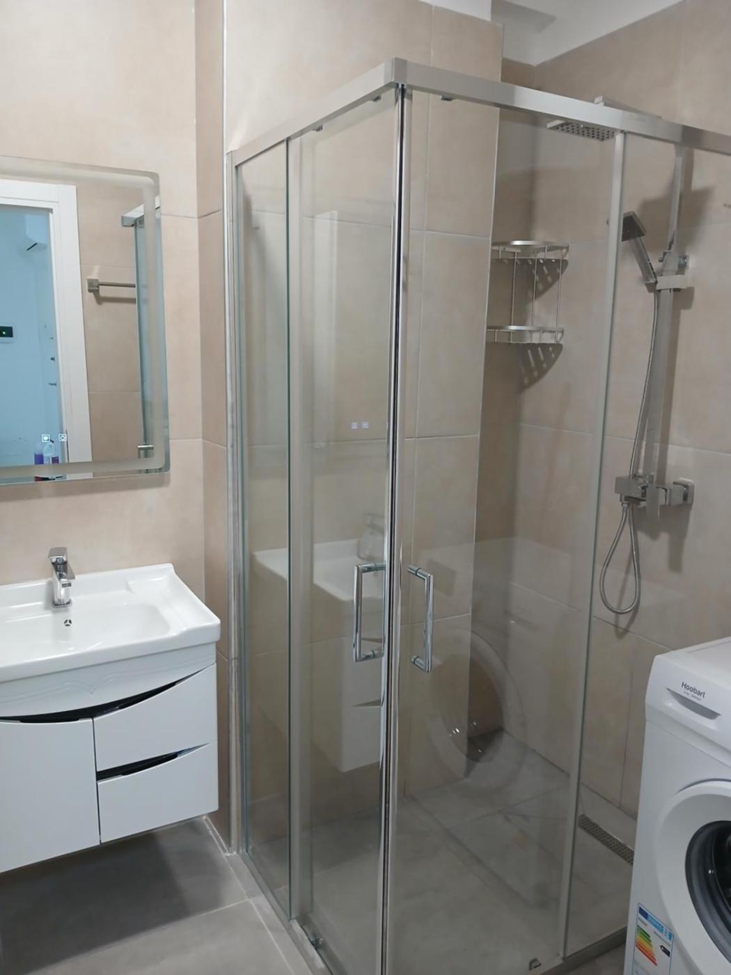 One-Bedroom Apartment. Boasting a private entrance, this air-conditioned apartment comes with 1 living room, 1 separate bedroom and 1 bathroom with a shower and a bidet. The apartments kitchen, which has a refrigerator and kitchenware, is available for cooking and storing food. The apartment features a flat-screen TV with cable channels, a washing machine, soundproof walls, a seating area as well as ancourtyard view. The unit has 3 beds.